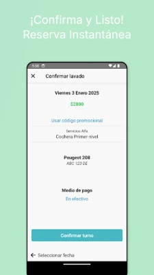 Sebaik sahaja pilihan anda dibuat, janji temu anda akan dijadualkan dan disahkan serta-merta. Proses yang diperkemas ini menghapuskan tekaan dan memberikan ketenangan fikiran serta-merta, mengetahui penjagaan kenderaan anda ditangani secara profesional. Nikmati kebebasan untuk merancang lebih awal, membuat pelarasan saat akhir jika perlu, dan menerima peringatan tepat pada masanya. Ia lebih daripada sekadar sistem tempahan; ia adalah pembantu peribadi anda untuk memastikan kenderaan anda sentiasa bersih, membolehkan anda memperoleh semula masa berharga untuk perkara yang benar-benar penting.