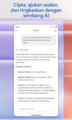 Jadikan setiap hari lebih produktif dengan Microsoft 365 Copilot, pembantu kecerdasan buatan peribadi anda yang sentiasa sedia membantu. Bayangkan memiliki seorang pakar yang mampu memahami arahan semula jadi anda – sama ada melalui teks atau suara – untuk meringkaskan dokumen-dokumen penting dari awan atau peranti anda, menggubal draf e-mel yang sempurna, atau menganalisis data hamparan yang rumit. Microsoft 365 Copilot membebaskan anda daripada tugas-tugas berulang, membolehkan anda memberi tumpuan kepada perkara yang benar-benar penting, hanya dengan berbual dan berinteraksi secara intuitif. Sediakan diri untuk hari anda, dapatkan jawapan segera, dan lakukan sumbang saran tanpa menggunakan tangan, semuanya dengan kuasa suara anda.